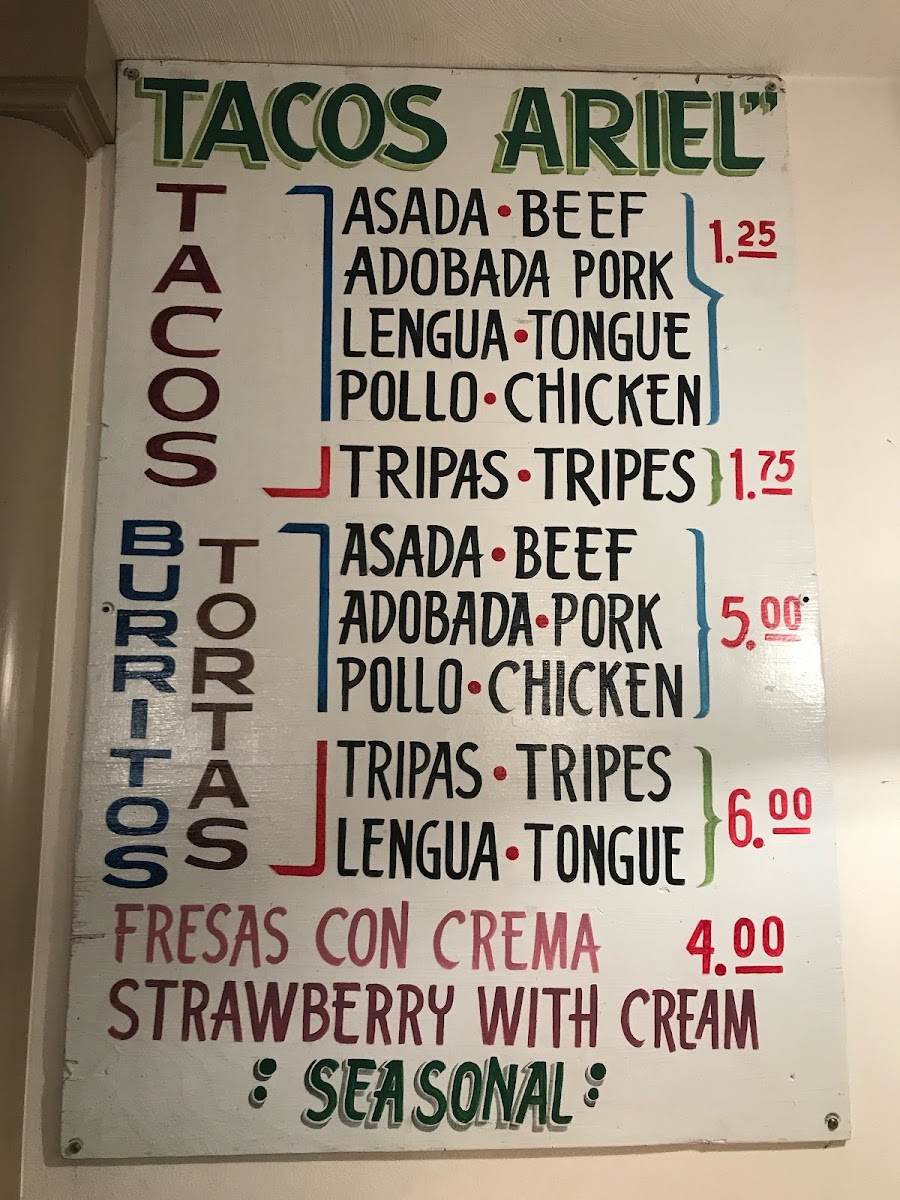 Ariel's Taqueria (Tacos Ariel) Menu